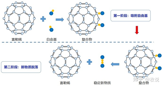 富勒烯是一个很神奇的成分,当它跨进化妆品领域时就一直争议不断。它利用自身丰富的电子云来吸附自由基,让自由基湮灭而不损失自身。
