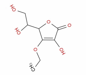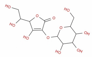 Vc的1号位的羧基和4号位的羟基发生酯化形成内酯,如果这个基团发生水解,可能是pH下降的原因。恰好这个基团对酸和碱都很敏感,所以配方一般要求接近中性。由于葡糖基的近位和吸电子效应,会导致这个基团更易水解。当然葡糖基也会有空间位阻,具体谁更容易被破坏不好说。