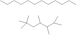 直链十二烷与支链十二烷的结构示意图