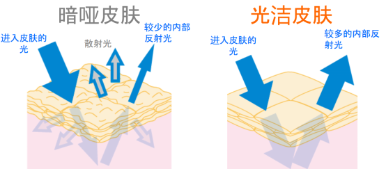 图:暗哑皮肤和光洁皮肤的表观现象(图片来源于一丸的产品资料)