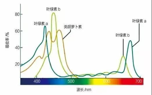 图10. 各光合色素的光谱吸收图示