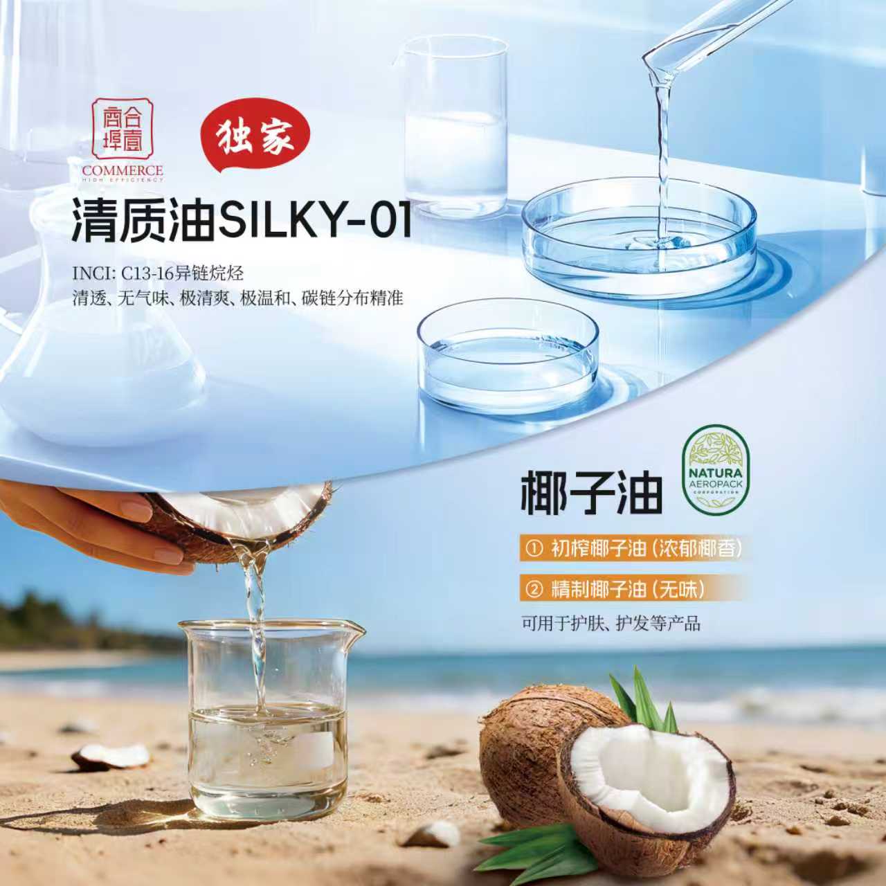 优点:菲律宾椰子来源,富含月桂酸(≥45%),抑菌消炎+保湿修护双效合一!