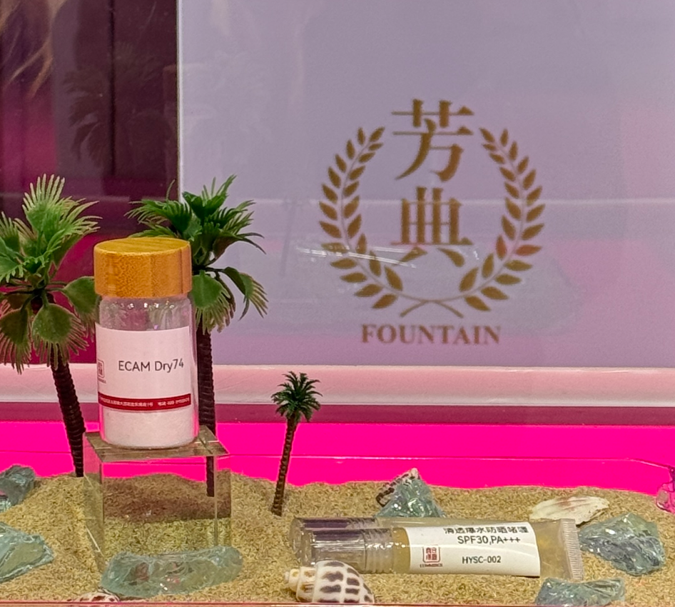 作为斩获2026年防晒板块芳典奖的优质原料,ECAM DRY74通过专利技术成功解决了传统TDSA强酸腐蚀性强、使用时需额外中和等行业痛点,成为展会期间的焦点之一